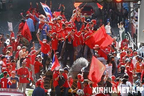 阿披實宣布曼谷進入緊急狀態后,“紅衫軍”沖入設在曼谷的內政部。