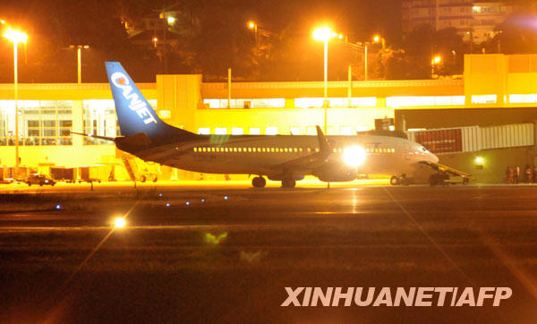 4月20日凌晨,一架客機停放在牙買加蒙特哥貝港桑斯特國際機場的停機坪上。新華社/法新