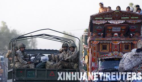 5月10日,在巴基斯坦北部馬爾丹和馬拉根德交界地區(qū),巴士兵和撤離的平民在路上相會(huì)。巴基斯坦軍方10日發(fā)表聲明說,在過去24小時(shí)里,巴安全部隊(duì)在該國西北部斯瓦特河谷及鄰近地區(qū)打死了大約200名武裝分子。隨著打擊塔利班武裝分子的軍事行動(dòng)的深入,巴安全部隊(duì)要求居民撤離斯瓦特山谷地區(qū)并實(shí)施宵禁。新華社/路透