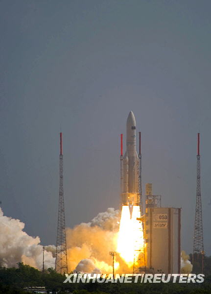 新華網巴黎5月14日電(記者 李學梅)格林尼治時間14日13時12分(北京時間14日21時12分)歐洲阿麗亞娜5-ECA型火箭攜帶歐航局世界最大遠紅外線望遠鏡“赫歇爾”及宇宙輻射探測器“普朗克”,從法屬圭亞那庫魯航天中心發射升空。