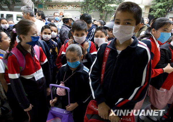 5月11日,在墨西哥首都墨西哥城,一些戴著口罩的小學(xué)生準(zhǔn)備進(jìn)入學(xué)校上課。當(dāng)日,因受到甲型H1N1流感疫情影響停課的墨西哥中小學(xué)和學(xué)齡前教育機(jī)構(gòu)開始復(fù)課。新華社/路透