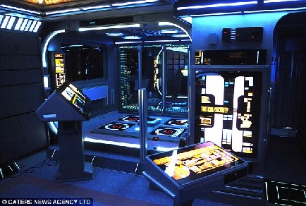 房間中到處充斥著光怪陸離的燈光和顯示器;每天早晨,聲控電腦系統(tǒng)會(huì)點(diǎn)亮所有的日光燈管;天花板由鏡子拼接而成;被有機(jī)玻璃和木材封得嚴(yán)嚴(yán)實(shí)實(shí)的窗戶看起來(lái)好像外面真的是外太空;就連門鈴也進(jìn)行了改造,成為船長(zhǎng)皮卡德那令人熟悉的聲音。