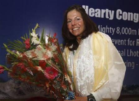 凱頓布魯娜是與德國籍丈夫Ralf Dujmovits一同攀登洛子峰,后者是第一位征服世界全部14座最高峰的德國人。