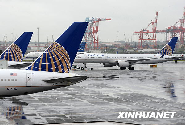 6月18日,美國大陸航空公司的飛機停在新澤西州紐瓦克機場的停機坪上。新華社記者申宏攝