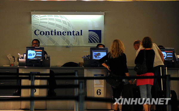 6月18日,乘客在美國新澤西州紐瓦克機場的美國大陸航空公司服務臺前辦理換乘手續。新華社記者申宏攝