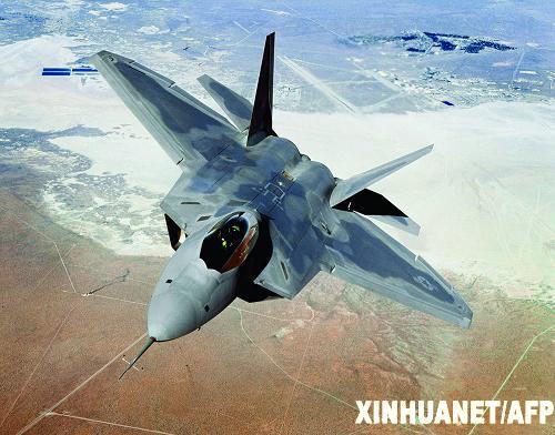 這張未標注日期的資料照片顯示的是一架F-22戰斗機在加州上空行進。 新華社/法新