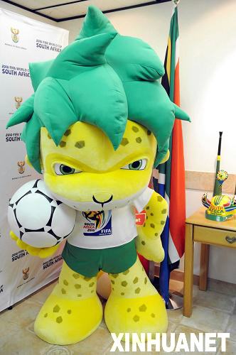 6月29日,世界杯推廣活動上的2010年世界杯吉祥物扎庫米。當日,南非共和國駐香港特別行政區領事館舉行新聞發布會宣布,南非政府為慶祝2010年主辦世界杯,將在香港舉行為期一年的推廣活動。新華社記者盧炳輝攝