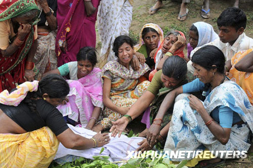 7月12日,在印度西部馬哈拉施特拉邦那格浦爾附近的韋恩根格河,婦女們哀悼失去的親人。當天,兩艘載有女性勞工的船只在這條河上傾覆,造成至少30人死亡。新華社/路透
