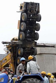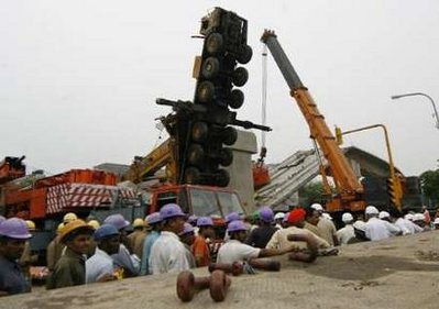 此前一天,該處地鐵施工工地發(fā)生高架橋坍塌事故,造成6人死亡、15人受傷。一天后,在該事故清理現(xiàn)場又發(fā)生了起重機倒塌事故,造成4人受傷。