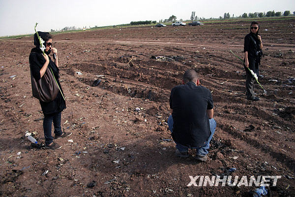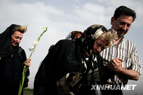 7月16日,遇難者親屬在伊朗西北部城市加茲溫附近的墜機現場悼念親人。一架由伊朗首都德黑蘭飛往亞美尼亞首都埃里溫的伊朗客機15日在加茲溫附近墜毀,機上168人全部遇難。新華社發(哈拉比薩斯攝)
