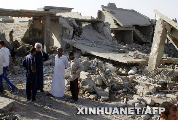 8月10日,在伊拉克北部城市摩蘇爾以東的卡茲那村,村民在爆炸現場圍觀。新華社/法新