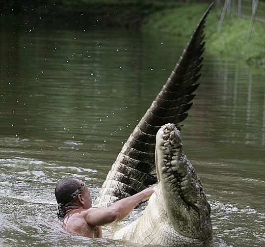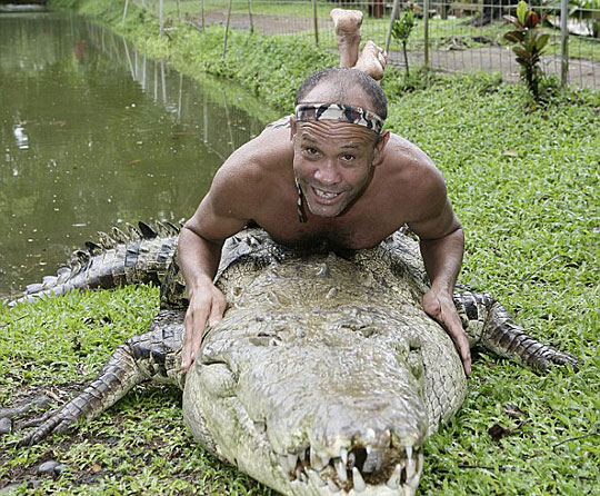 據英國媒體8月16日報道,除了人被鱷魚吃掉或殺掉鱷魚以外,你還能想象二者之間發生什么故事么?哥斯達黎加漁民Chito告訴你,鱷魚還可以成為人的寵物!真是駭人聽聞!但事實的確如此。20年前,Chito在一個湖里搭救了一條因吞食奶牛而被當地農民射中頭部的鱷魚Pocho。當時的它已經奄奄一息,好在經過Chito的細心照料,Pocho逐漸恢復了健康。之后經過10年的磨合,Chito和Pocho開始成為了朋友,二者經常在一起嬉戲玩耍。如今,大量來自世界各地的游客也紛紛前去見證這一非凡的人鱷情緣。