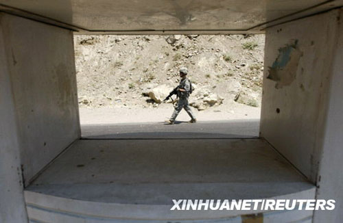 7月25日,在阿富汗庫納爾省佩什山谷,一名巡邏的美軍士兵經過一座加油站。新華社/路透