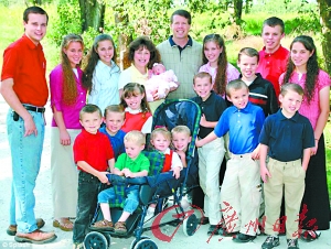 米歇爾和丈夫吉姆·達(dá)格爾24年前結(jié)婚。婚后第4年,21歲的米歇爾生下第一個孩子,是個男孩,取名喬希。之后,孩子以平均一年一個的速度降生。而達(dá)格爾家的規(guī)模越來越龐大。