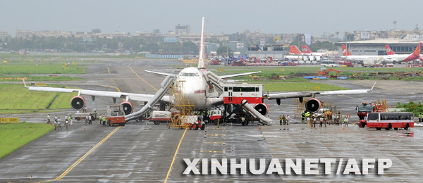 9月4日,在印度孟買(mǎi)的恰提拉帕提·希瓦吉國(guó)際機(jī)場(chǎng),消防人員聚集在一架波音747飛機(jī)周?chē)?/P>