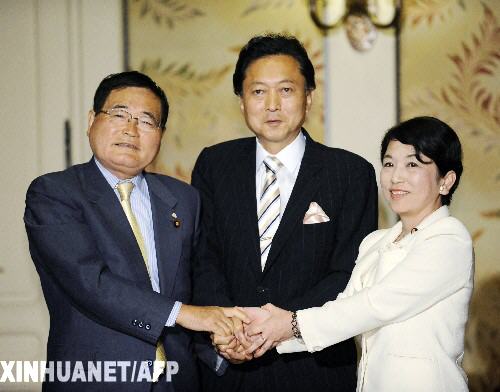 據“中央社”報道,民主黨、社民黨和國民新黨三黨魁此前簽署同意書,決定共同組成聯合政權,民主黨黨魁鳩山由紀夫隨后正式邀請兩友黨黨魁入閣。