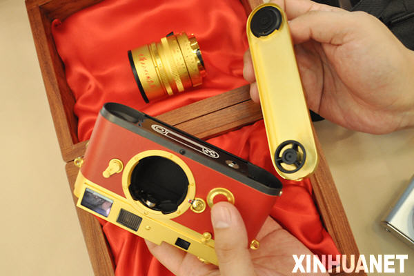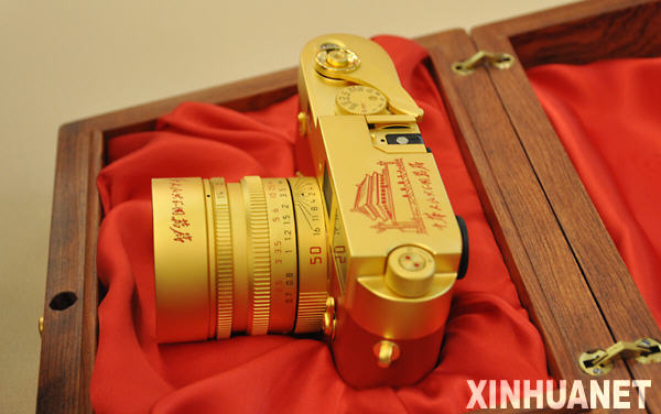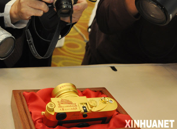 中國(guó)前外交官聯(lián)誼會(huì)和德國(guó)徠卡照相機(jī)公司10日聯(lián)合推出特制的徠卡紀(jì)念版金機(jī)。新華網(wǎng)發(fā)