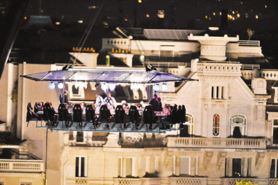 中新網9月13日電 如果你懷揣萬元閑錢不知道怎么花,可以試試法國巴黎近日推出的空中大餐。據香港《文匯報》報道,你將有機會懸坐在杜伊勒利花園50米上空,享受法國頂級廚師為你烹調美食的同時,還能飽覽巴黎美景。這樣刺激奢華的一餐,人均消費924歐元(約合9207元人民幣)。