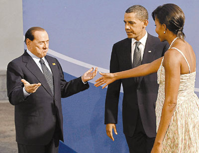 意大利總理貝盧斯科尼好色已是“公認(rèn)的事實(shí)”,連美國總統(tǒng)奧巴馬夫婦似乎都有所耳聞。在7月的意大利G8峰會(huì),奧巴馬就被拍到拒絕與其握手的畫面。在24日的G20晚宴上,老貝再次在奧巴馬夫婦處遭遇尷尬。