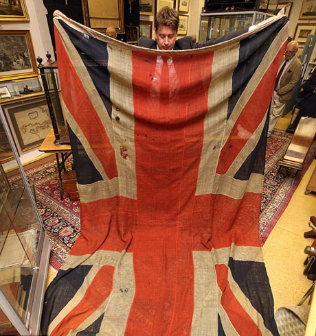 中新網10月22日電 據英國媒體報道,英國唯一一面從200多年前的戰場保留至今的國旗日前賣出了38.4萬英鎊高價,是其預估價的近40倍,打破世界紀錄。