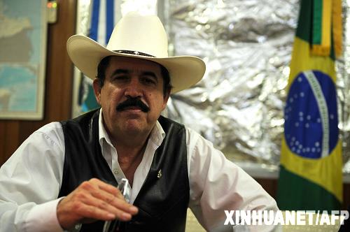 11月6日,在洪都拉斯首都特古西加爾巴的巴西駐洪大使館,洪遭罷免總統(tǒng)曼努埃爾·塞拉亞舉行新聞發(fā)布會。洪都拉斯臨時政府總統(tǒng)羅伯托·米切萊蒂5日宣布,他將組建新一屆聯(lián)合政府,但遭罷免總統(tǒng)曼努埃爾·塞拉亞被排除在外。塞拉亞隨后宣稱,不久前達(dá)成的和解協(xié)議已經(jīng)破產(chǎn)。新華社/法新