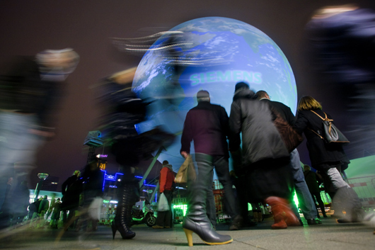 12月6日,哥本哈根市中心廣場樹起一個巨大的“地球”