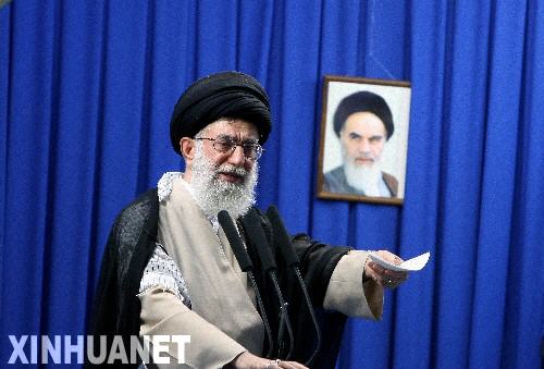 資料圖片:6月19日,伊朗最高領袖哈梅內伊在德黑蘭大學舉行的星期五禮拜集會上發表講話。哈梅內伊當日表示,面對近日因總統選舉引發的分歧和矛盾,伊朗人民應保持團結,通過合法渠道來解決爭議。 新華社/伊朗法爾斯通訊社