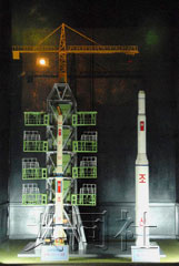 “銀河2號”模型與“白頭山1號”運載火箭模型并排展出。“白頭山1號”曾于1998年8月發射了朝鮮的第一顆人造衛星“光明星1號”。“光明星2號”的四面被藍色太陽能光板覆蓋,頂部安裝有通信天線。解說員向參觀者介紹了發射情況和意義。