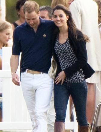 英國威廉王子攬著“準王妃”凱特.米德爾頓的肩膀,兩人十分甜蜜