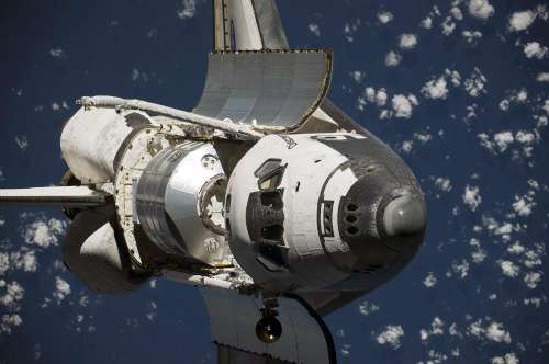 美國“發(fā)現(xiàn)”號航天飛機(jī)在太空中的英姿。(資料圖片)