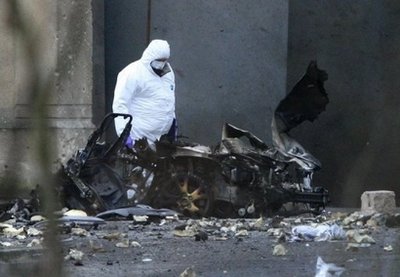 2月23日,英國北愛爾蘭警方在爆炸地點進行檢查