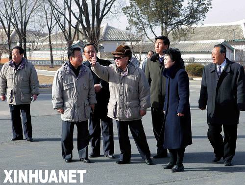 這張朝鮮中央通訊社3月14日提供的照片顯示,朝鮮最高領導人金正日(中)近日視察黃海北道沙里院市嵋谷合作農場。金正日在視察時,要求把全國、全民力量集中在農業方面,爭取在農業生產中取得劃時期的轉變。新華社/朝中社