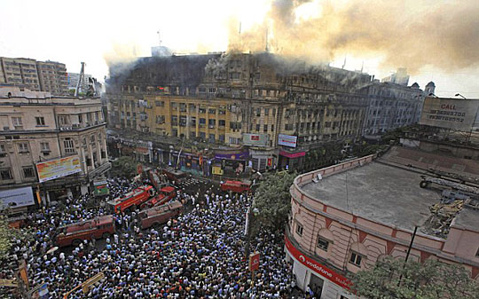 失火的是加爾各答標(biāo)志性建筑斯蒂芬法院(Stephen Court),大火于當(dāng)?shù)貢r(shí)間23日下午2點(diǎn)15分爆發(fā),消防人員到晚上10點(diǎn)半才控制住火勢(shì)。