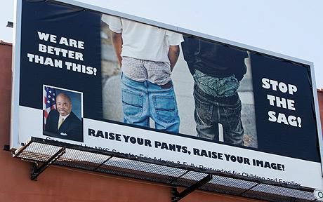 紐約布魯克林的居民1日上班時就可看到參議員埃里·亞當斯(Eric Adams)推出的一張大廣告牌,上面兩個年輕人穿著低得可見內褲的超低腰牛仔褲,旁邊標注一排大字“不要再讓你的褲子掉下去!”但這則廣告被一些人認為立意不錯但照片不雅。