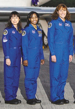 4月5日,日本女航天員山崎直子(左)、太空工程師斯蒂芬妮.威爾遜(中)以及原中學女教師林登貝爾格(右)將乘坐“發(fā)現(xiàn)號”航天飛機飛往國際太空站