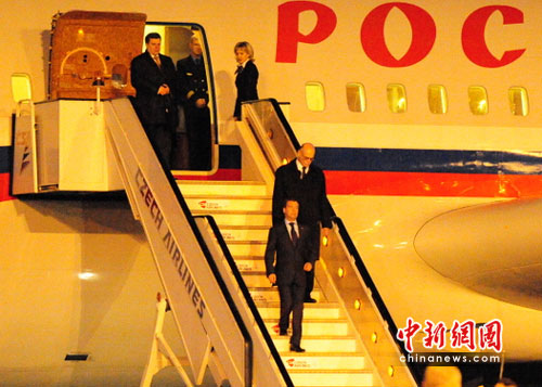 俄羅斯總統(tǒng)梅德韋杰夫飛抵捷克首都布拉格。中新網(wǎng)發(fā) 黃頻 攝
