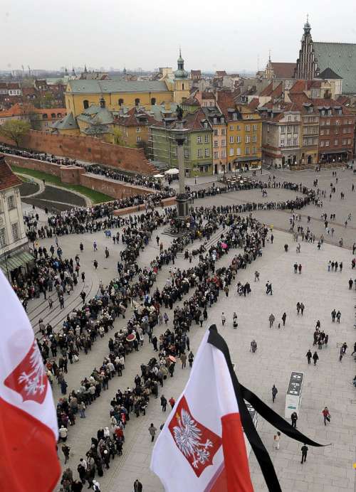 據香港《大公報》報道,數以萬計的民眾14日清早排隊等候哀悼早前在俄羅斯空難中遇難的波蘭總統夫婦。為了瞻仰總統卡欽斯基和第一夫人的遺容,含著眼淚的民眾在華沙總統府外排隊,蜿蜒的人龍估計長達1公里。
