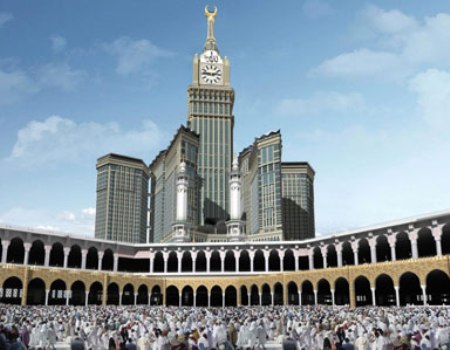 據(jù)外電14日?qǐng)?bào)道,就在世界最高建筑迪拜塔還在人們的驚嘆聲中熠熠生輝之時(shí),不遠(yuǎn)處的沙特麥加,又一座超高建筑也將揭開它壯麗的面紗。總高超過800米的麥加“鐘樓”建成后將成為世界第二高的建筑,它的高度是倫敦大本鐘的6倍。