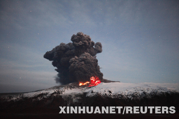 4月17日,冰島埃亞菲亞德拉冰蓋火山持續(xù)噴發(fā)。冰島南部火山日前再次噴發(fā)所產(chǎn)生的大量火山煙塵嚴(yán)重影響了歐洲地區(qū)的空中交通,導(dǎo)致多個國家機(jī)場關(guān)閉,大量航班被取消。新華社/路透