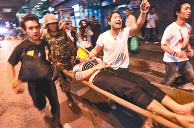 據(jù)香港《文匯報(bào)》報(bào)道,泰國(guó)反政府紅衫軍聚集在首都曼谷市中心,用削尖的竹枝和車胎自制防衛(wèi)欄,保護(hù)示威營(yíng)地,成為了泰國(guó)軍警的“禁區(qū)”,卻出乎意料地成為了“旅游景點(diǎn)”,好奇的游客爭(zhēng)相拍照留念。