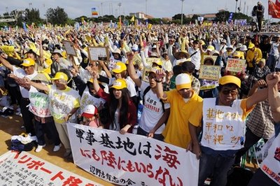 據報道,將機場遷至鹿兒島縣德之島的方案遭到了當地的強烈拒絕。日本首相鳩山由紀夫能否按照承諾在5月底前解決搬遷問題令人擔憂。政府內部有人主張回歸遷往名護市施瓦布軍營沿岸地區這一現行方案。集會顯示了沖繩拒絕縣內搬遷的民意,這將使得政府更加難以應對。