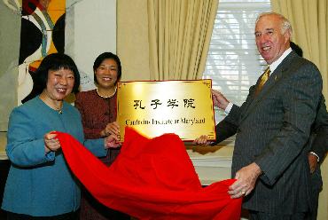 資料圖片:2004年11月17日,中美雙方在馬里蘭大學簽署共同建設美國第一所孔子學院----馬里蘭大學孔子學院的協議。