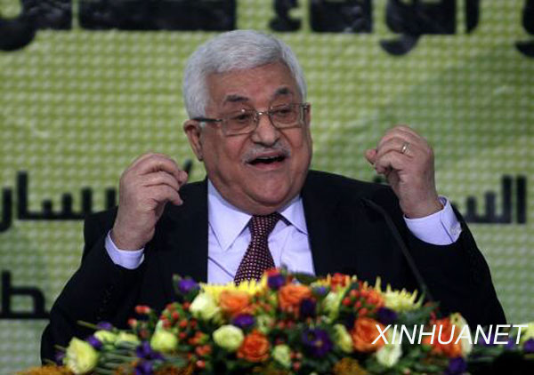4月24日,在拉姆安拉召開的巴民族解放運動(法塔赫)革命委員會第三次會議上,巴勒斯坦民族權力機構主席阿巴斯發表講話。阿巴斯當天在拉姆安拉重申,巴勒斯坦堅持以“兩國方案”為基礎解決巴以爭端,堅決反對建立一個只有臨時邊界的巴勒斯坦國,也反對“一個國家,兩個民族”的說法。 新華社發(法迪·阿魯攝)