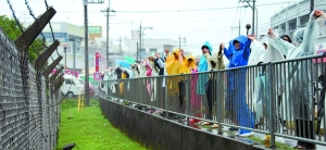 雖然下著雨,但中午過后陸續有沖繩縣民眾來到位于宜野灣市中心的駐日美軍普天間機場抗議示威。此次活動是由普天間機場周邊7個市鎮的市長,以及日本社民黨、共產黨等數十個政黨和團體發起的。