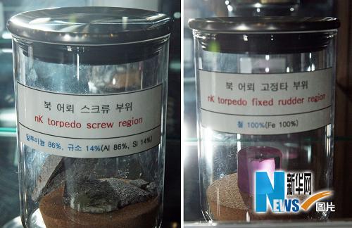 5月20日,在韓國首爾國防部會議室里展示著說明“天安”號沉沒原因的物件。當日,韓國“天安”號軍民聯合調查團公布正式調查結果稱,綜合各種證據來看,韓國海軍的“天安”號警戒艦是遭受朝鮮小型潛水艇發射的魚雷攻擊而沉沒的。新華社/聯合通訊社