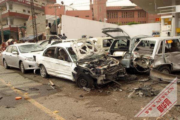 這是2010年5月28日在巴基斯坦東部城市拉合爾拍攝的在襲擊中被損毀的車輛。 新華社發(賈米勒·艾哈邁德攝)