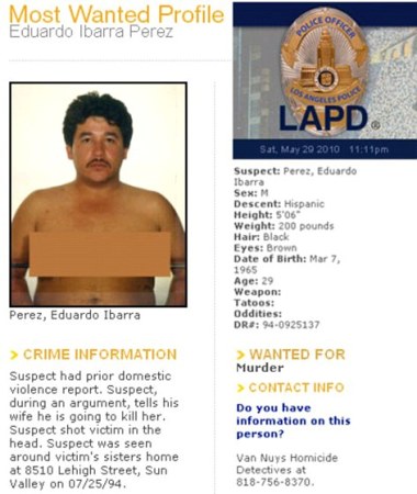 據(jù)外電30日報道,美國洛杉磯警方日前抓獲了一名殺人犯,在為其拍照時,嫌犯愛德華多·伊瓦拉·佩雷斯碩大松垂的胸部令警察們大吃一驚,他們不得不使用技術(shù)手段給這名男性的私密處“遮羞”。