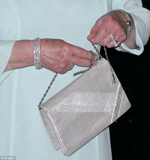 聚會期間,女王的銀色手提包鏈子斷掉。