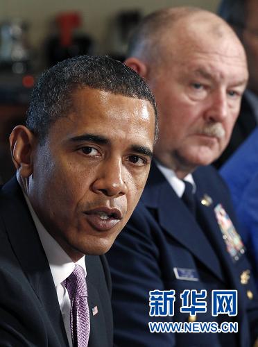 6月7日,美國總統奧巴馬(左)在華盛頓白宮召開的內閣會議上發言。奧巴馬當天說,原油泄漏事件將對美國經濟造成實質影響,而且這種影響將持續下去。新華社/路透