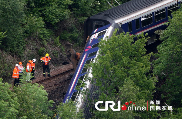 2010年6月7日,英國蘇格蘭地區火車脫軌現場。該事故造成9人受傷。